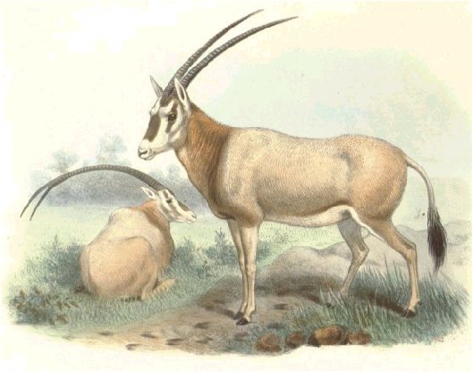 1.1. Taxonomy. Oryx dammah belongs to the tribe Hippotragini, subfamily Hippotraginae, family Bovidae, which comprises one extinct species and seven surviving species together with two evolutionarily distinct subspecies in genera Oryx, Addax and Hippotragus (Simpson, 1945; Corbet, 1978; Murray, 1984; Corbet and Hill, 1986; Wacher, 1988). All hippotraginids are adapted to the exploitation, at low density, of difficult, low-productivity habitats (Kingdon, 1982; Murray, 1984; Wacher, 1988; Beudels, 1993). Genus Oryx comprises five evolutionary isolates, of which one, Oryx leucoryx, is adapted to deserts, three, Oryx dammah, Oryx gazella beisa, Oryx gazella gazella, to subdesert or semidesert habitats, the last, Oryx gazella callotis, to somewhat more productive savannas (Wacher, 1988).1.2. Nomenclature. 1.2.1. Scientific name. Oryx dammah (Cretzschmar, 1826) 1.2.2. Synonyms. Antilope gazella, Cerophorus gazella, Oryx gazella, Cemas algazel, Aegoryx algazel, Antilope algazella, Oryx algazella, Antilope tao, Oryx tao, Antilope leucoryx, Oryx leucoryx, Antilope ensicornis, Oryx ensicornis, Antilope bezoartica, Oryx bezoarticus, Antilope dammah. 1.2.3. Common names. English: Scimitar-horned Oryx, Scimitar Oryx. Arabic: Wach, Begar al Ouach. French: Oryx algazelle, Algazel (Buffon, 1764), Algazelle (Cuvier, 1819), Antilope oryx, Oryx blanc. 2. Biological data 2.1. Distribution. 2.1.1. Historical distribution. The historical distribution of permanent or temporary presence and of movements of the Scimitar-horned Oryx includes all of Saharan and sub-Saharan North Africa between the Atlantic and the Nile. However, this range was never uniformly occupied, the distribution and extent of effective presence of individuals having always been conditioned by the location of sub-desert zones to which the Oryx is adapted. the Scimitar-horned Oryx seems to need, within an area compatible with its capability of seasonal migrations, an adequate time sequence of therophyte pastures, perennial graminid formations and dry woodland, notably of acacias (Brouin, 1950; Malbrant, 1952; Gillet, 1965, 1969, 1970; Newby, 1974, 1988; Dragesco-Joffé, 1993). This combination of habitats is especially characteristic of regions where annual precipitation is between 75 and 400 mm (Newby, 1988; Thomas and Newby, 1990). In the arid conditions that have prevailed in the Sahara over the last three millennia (Le Houérou, 1986; Newby, 1988), these requirements essentially limit the potential distribution of the species to the northern and southern subdesert fringes, that is, to the Sahel and the Mediterraneo-Saharan transition zone (Rattray, 1960; White, 1983; Le Houérou, 1986; Ayyad and Ghabbour, 1986; Monod, 1986; Newby, 1988; Ozenda, 1991). The ecological conditions favourable to the species can also develop, although on more restricted surfaces or in an unstable manner, in the Atlantic Sahara and surrounding areas (Rattray, 1960; White, 1983; Ozenda, 1991), on the periphery of entral Saharan mountains (Rattray, 1960; White, 1983; Le Houérou, 1986; Ozenda, 1991), and in locations with particular access to the water table (Le Houérou, 1986), notably around large aeolian depressions of the Libyan Desert (Osborn and Helmy, 1980; Ayyad and Ghabbour, 1986; Zahran and Willis, 1992).The main, Sahelian, range of Oryx dammah coincides with the Sahel semi-desert grassland of White (1983), forming his unit 54a in region XVI. This well-characterised band is also the sub-Saharan Aristida steppe zone of Rattray (1960), comprising his units A11, A13, A15, the sub-desert steppes of Newby (1974), the Saharan savannas of Schulz (1988) and of Ozenda (1991). They extend across southern central Mauritania between 18° N (locally 20°) and 16° N, central Mali between 18° and 15°, Niger between 17° and 15°, Chad between 17° and 14°, and Sudan between 17° and 12° 30' (Malbrant and Maclatchy, 1949; Brouin, 1950; Audas, 1951; Dekeyser, 1955; Gillet, 1965, 1969, 1970; Kock, 1970; Newby, 1974, 1975, 1988; Lamprey, 1975; Schnell, 1976; Wilson, 1978, 1980; Monod, 1986; Ayyad and Ghabbour, 1986; Hillman and Fryxell, 1988; Sournia and Verschuren, 1990; Heringa, 1990; Grettenberger and Newby, 1990; Thomassey and Newby, 1990; Millington et al., 1991; Dragesco-Joffé, 1993; Hashim, 1996). The range of the Oryx also included more southern latitudes, advancing into the band of Sahelian deciduous bushland (White, 1983, region XVI, unit 43), in particular, in Senegal (Sournia and Dupuy, 1990), in Burkina Faso (Heringa et al., 1990), in Mauritania (Trotignon, 1975), in Chad (Gillet, 1965; Newby, 1974), in the Sudan (Audas, 1951; Kock, 1970; Wilson, 1980), and even into the Sudanian dry woodlands (White, 1983, region III, unit 29a), notably in Chad, where the 11th parallel was reached during exceptionally dry years (Gillet, 1965) and probably in the Sudan (Audas, 1951). The range of the species also extended northwards to 20° N, in the favourable conditions of the Nile Valley of Sudan (Kock, 1970). A subdesert fringe somewhat equivalent to the Sahel occurs north of the Sahara in the transition zone between the Mediterranean region and the desert. It is formed of the submediterranean steppe band with Stipa tenasissima and Lygeum spartum (Rattray, 1960, units ST1, ST2, ST3; White,1983, region XVIII, unit 55), including Argania spinosa woodland (unit 49) or Acacia gummifera woodland (unit 79), completed by a part of Rattray's (1960) northern Aristida pre-steppe band, forming his unit A16. This Mediterraneo-Saharan fringe is developed over some width and with some continuity only between the Atlantic, where it descends to 27° N, and Tunisia (Rattray, 1960; White, 1983). It exists in a fragmentary way in extreme northwestern and extreme northeastern Libya. The presence of the Oryx in this Mediterraneo-Saharan zone was documented during Roman times, at least in Algeria (Heim de Balsac, 1931; Kowalski and Rzebik-Kowalska, 1991) and Tunisia (Sclater and Thomas, 1
