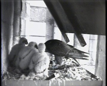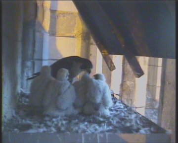 dans l’espoir d’apercevoir les faucons arriver sur la cathédrale. Et c’est le