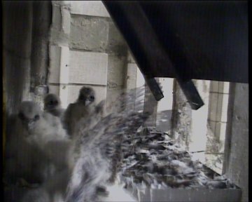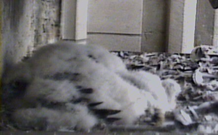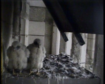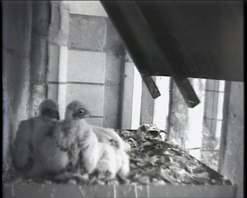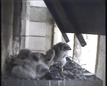 Les fauconneaux sont seuls et se pelotonnent l'un contre l'autre en pyramide.