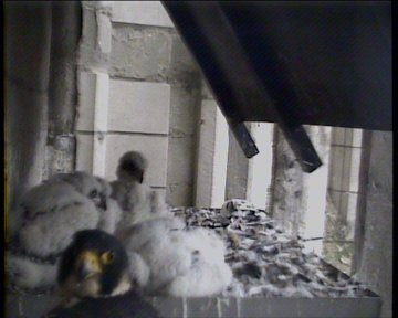 dans le "Pont faucons". Bonne ambiance d'attente. Le mâle est perché en haut de