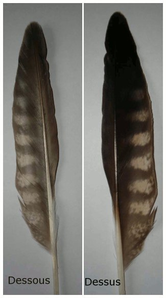 Plume trouvée le même jour au pied de la tour Nord. On remarque que le bord est plutôt