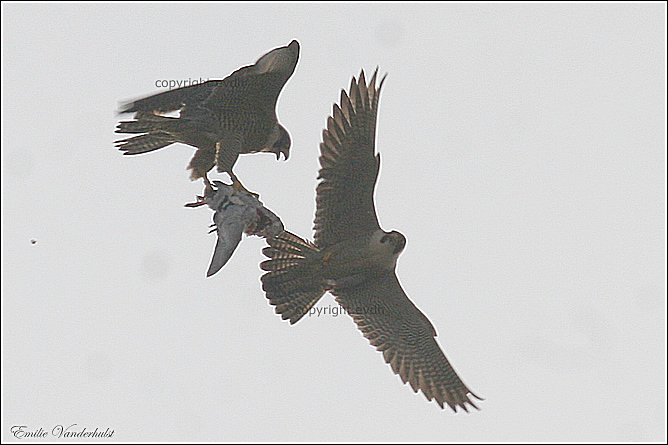 faucons pèlerins de la cathédrale, un jeune avec le père le 13 Juillet. |