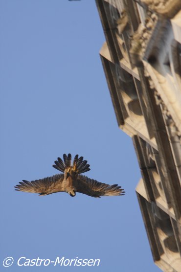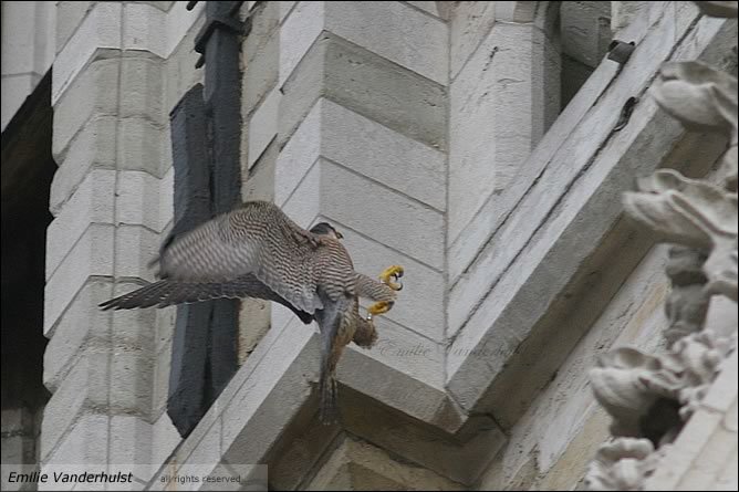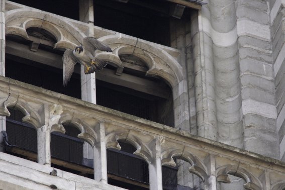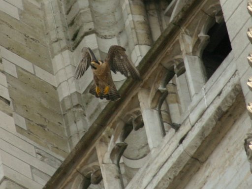 17h12 : Vol d'un adulte au dessus de la cathédrale. Sans doute la femelle car