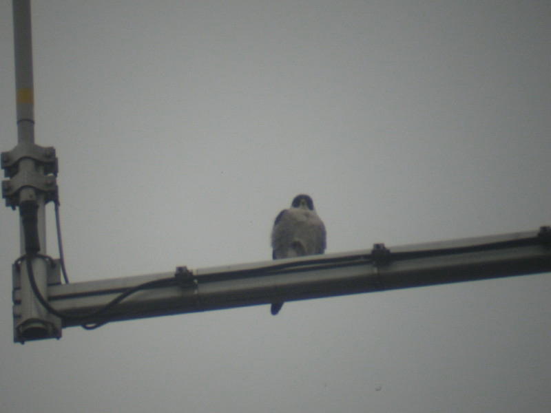 J'ai de nouveau eu le plaisir d'observer un faucon pèlerin sur le pylône de la gendarmerie près du carrefour de l'avenue de la Couronne et