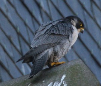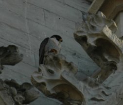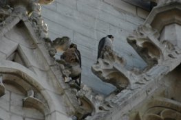 faucons peuvent changer de perchoir. Au bas de la tour nord, la tête