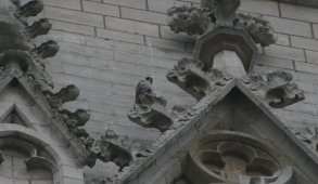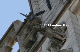 7h45 : Chez Gudule. La femelle est seule posée sur sa gargouille. A 8h,