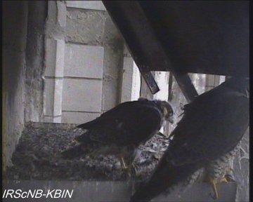 valken veel op het balkon. Ze springen nu gemakkelijk op het platform die ze
