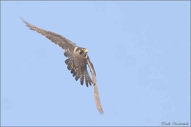 De jonge valken hebben een zeer kantige staart, met een fijne witte band