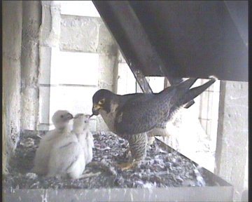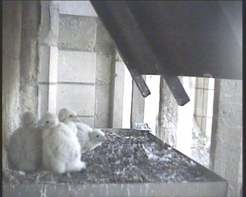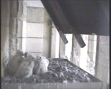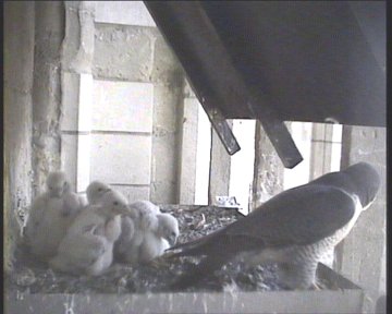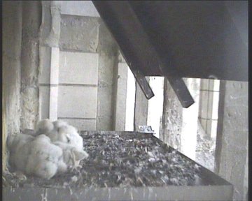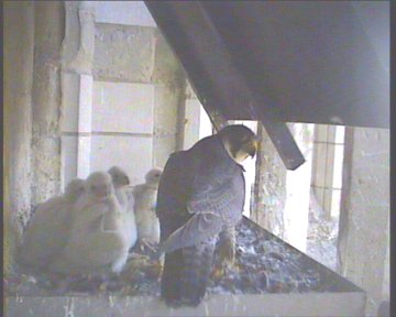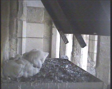 08h40: les deux adultes sont sur la tour Nord mais la femelle a vite disparu.