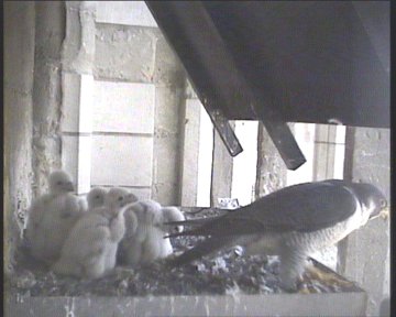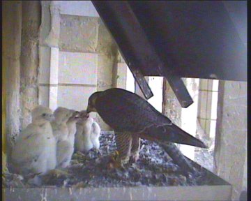 nourrissage de la femelle et des images des jeunes fauconneaux . Premier essais