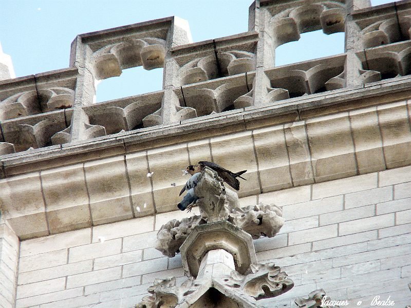 proie, un pigeon, est plumée au sommet de la cathédrale. Cette gargouille