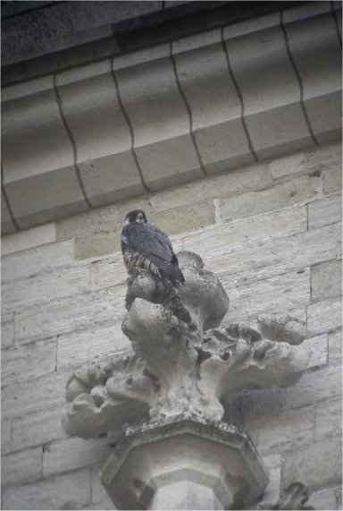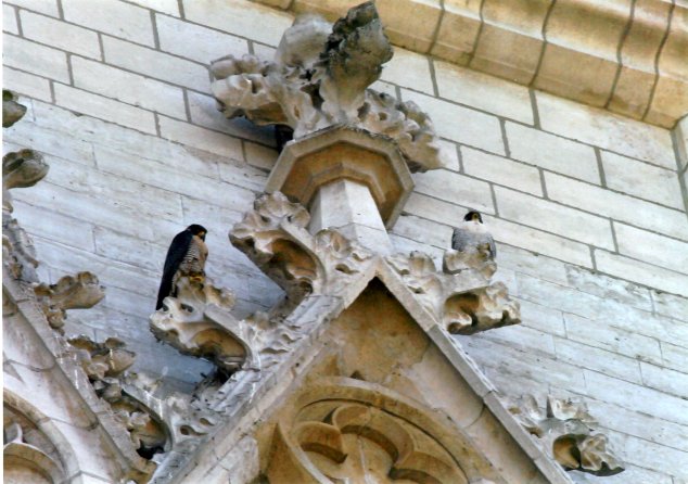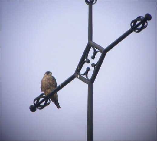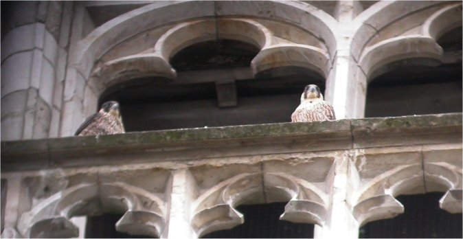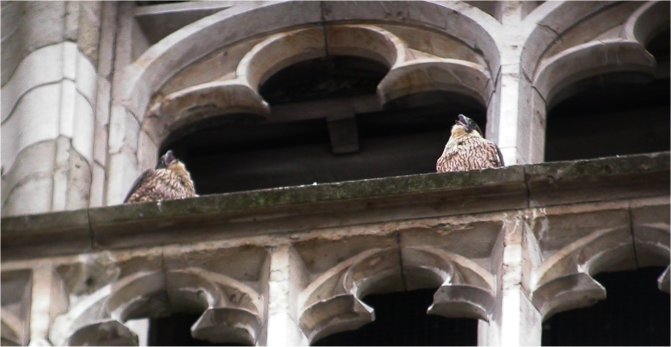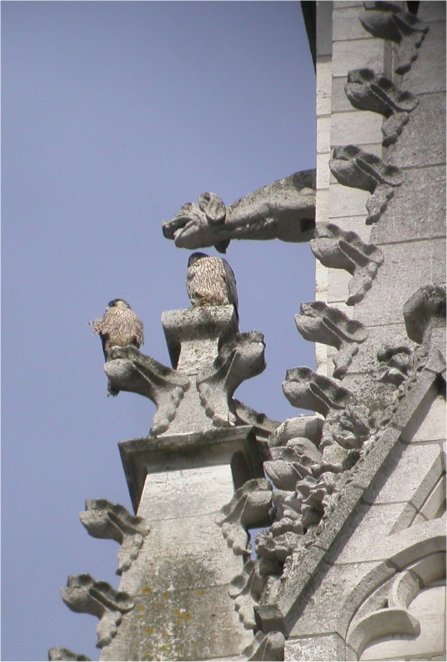 des jeunes en vol autour de la cathédrale ou posés sur la girouette.(obs.