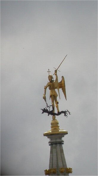 Saint Michel, au sommet de l'hôtel de Ville, attend l'orage |