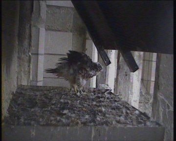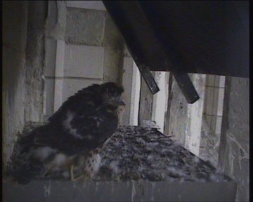 De jonge valken wandelen sedert een kleine week op het balkon, dikwijls buiten