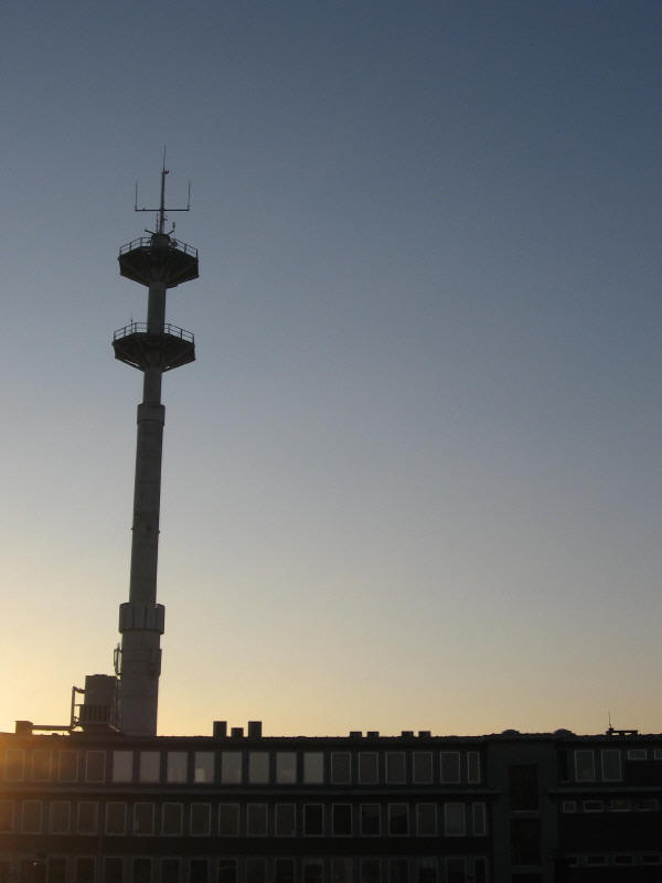 la jeune femelle est perchée sur le toit de la tour nord. Pas de trace des