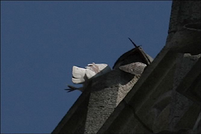 12h39: vol d'un groupe de pigeons autour de la cathédrale. Panique soudaine