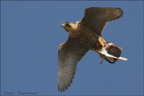 13h26: départ de la femelle avec les restes du pigeon qu'elle va déposer