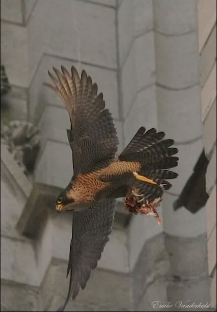 11h40: départ de la femelle qui va se poser sur la gargouille centrale