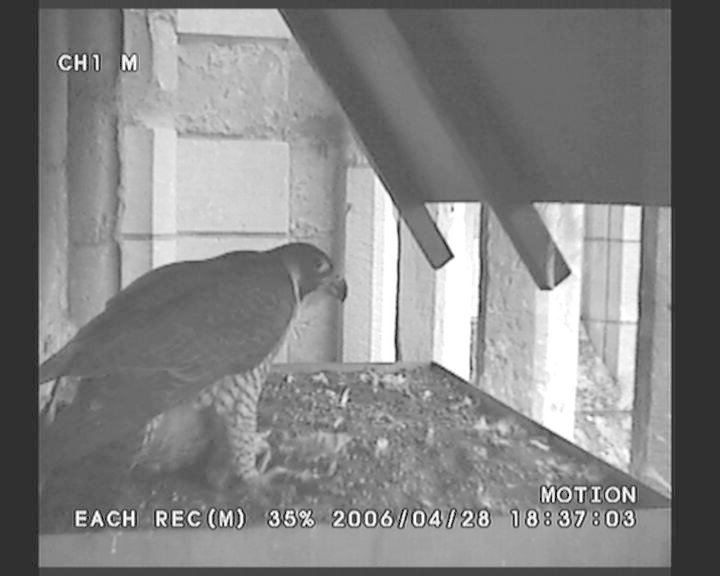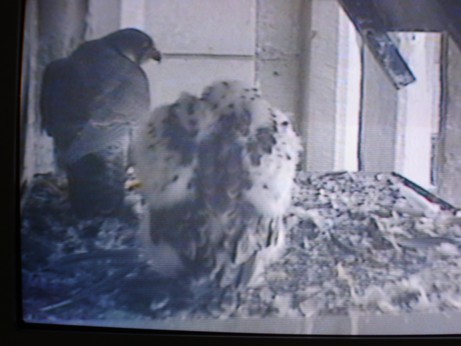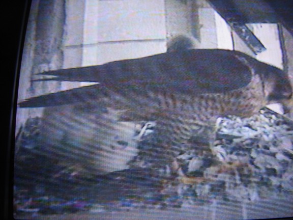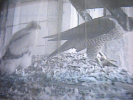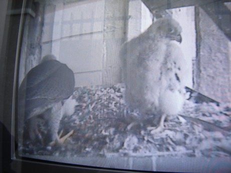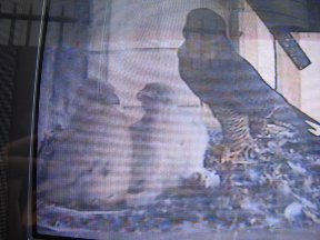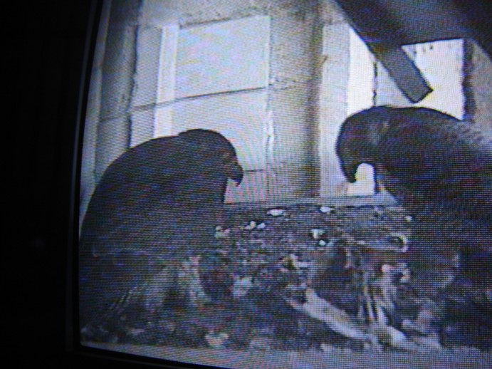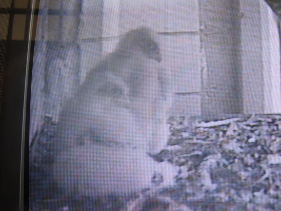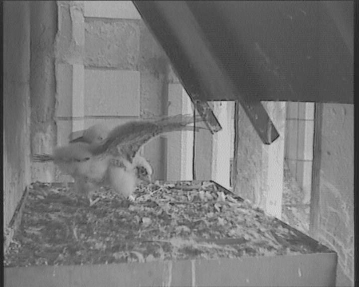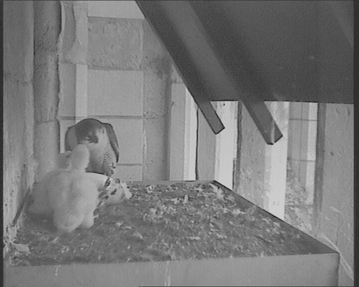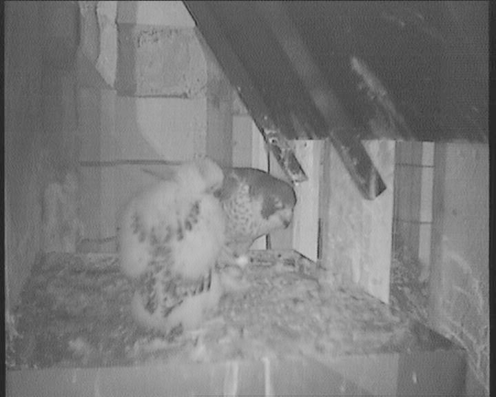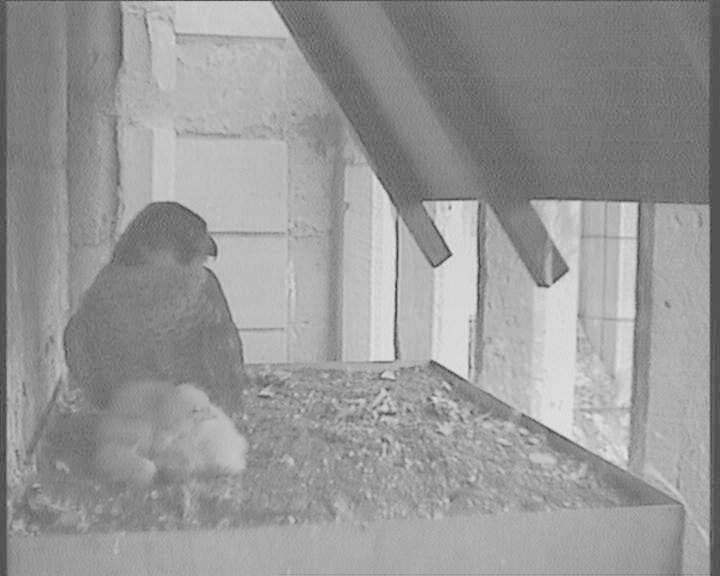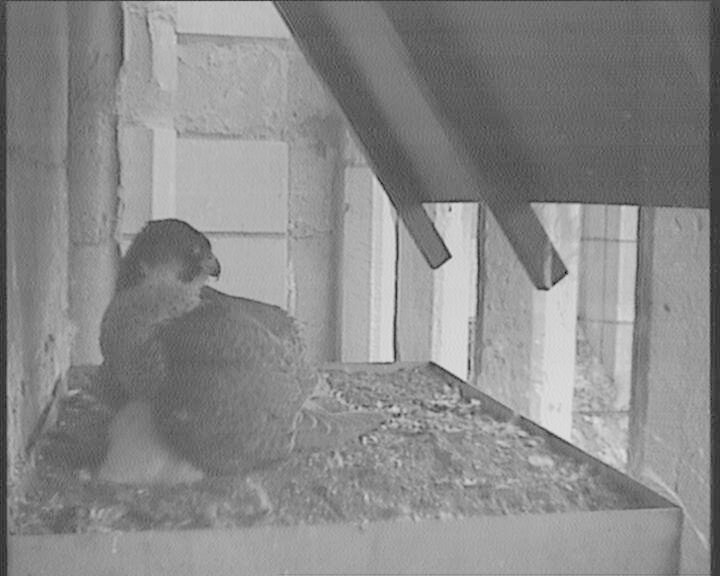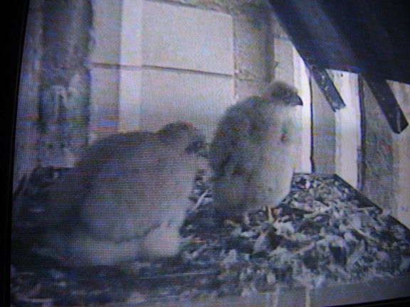 16h. Toujours 2 fauconneaux. Pas de signe d'éclosion du 3ème oeuf. De