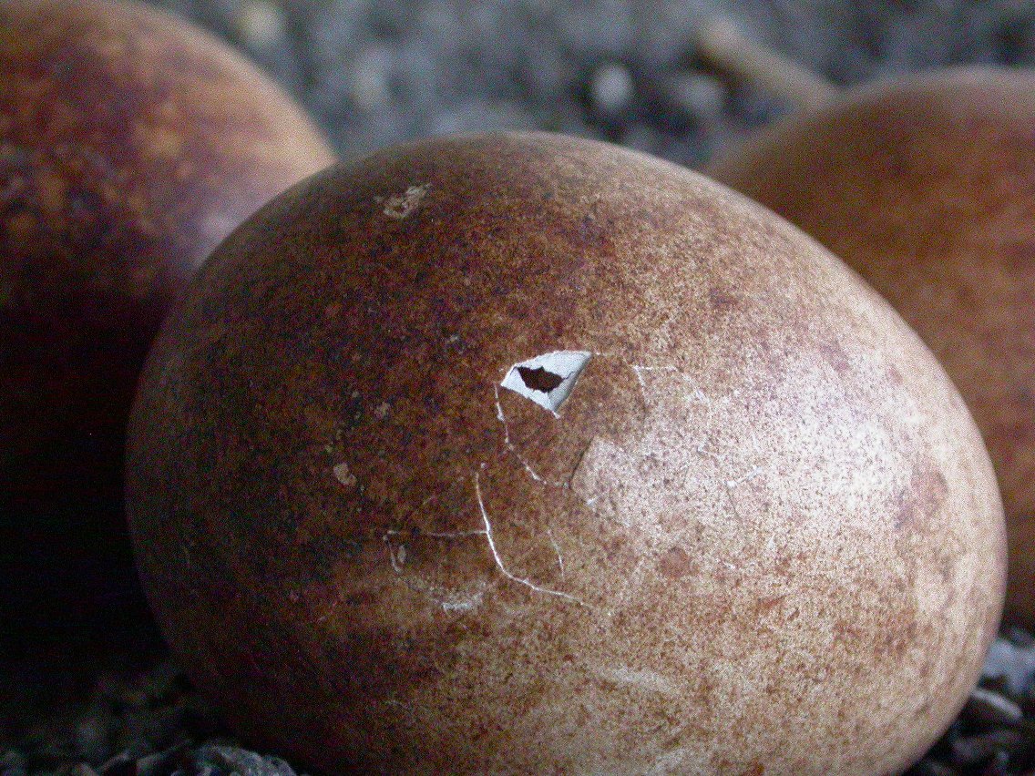 Un poussin a déjà commencé à percer sa coquille. Ils seront donc là pour