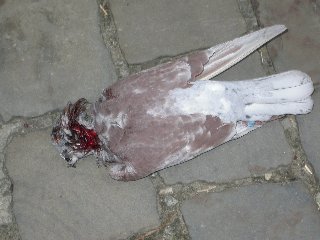 Effrayé par un bruit suspect, le mâle lâche le pigeon
