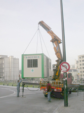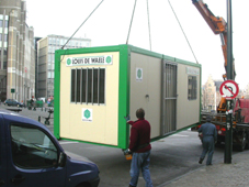 5 avril - 8h15: Arrivée du "Container" et installation des panneaux